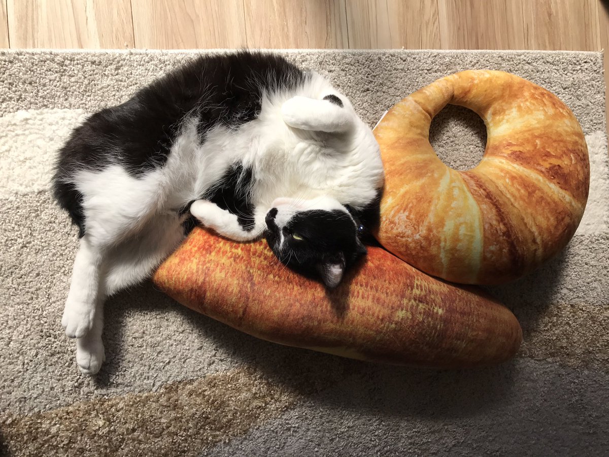 ねこがパンをこねこね ニトリのパン型クッションと猫のコラボに癒やされる ねこのごろごろブログ